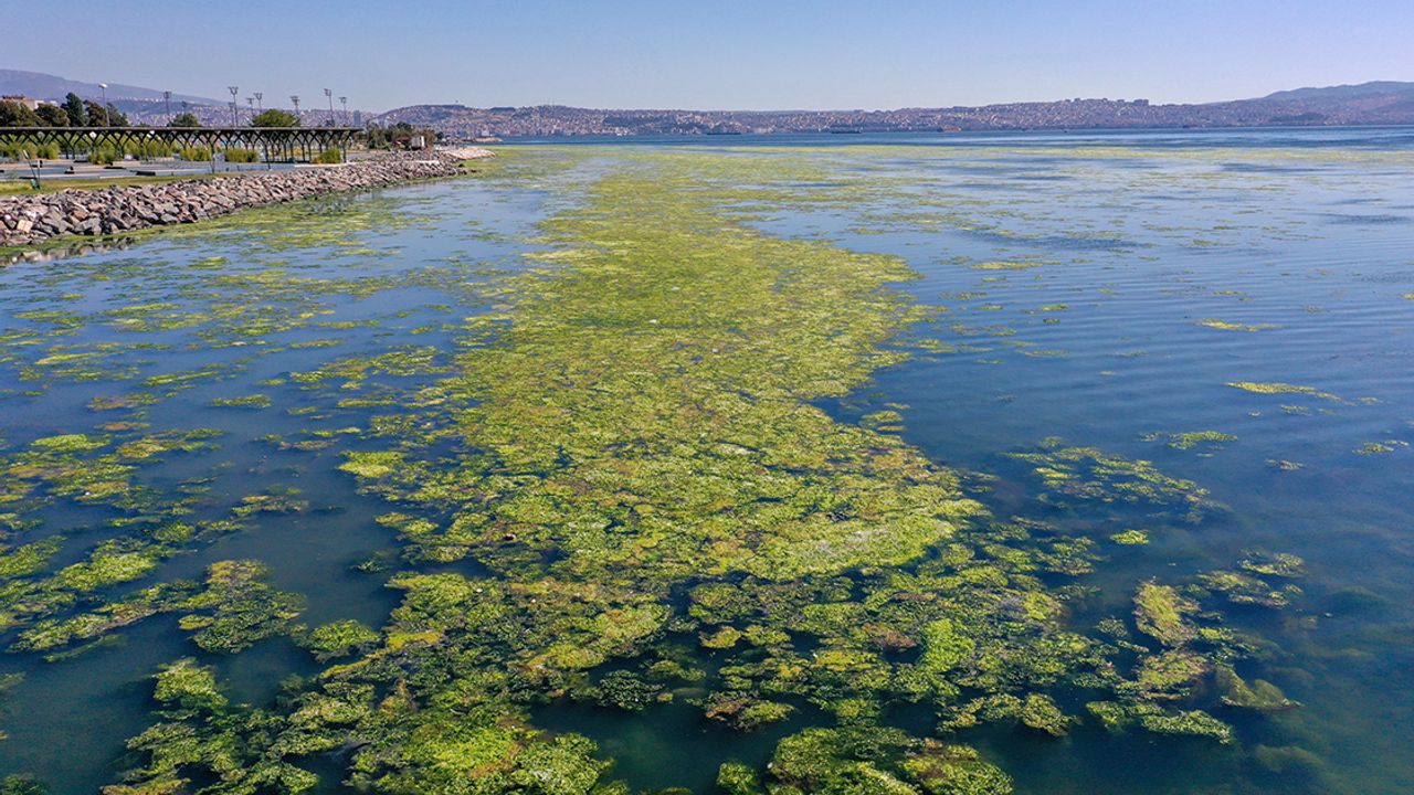 Körfezde belli dönemlerde gözlemlenen aşırı alg çoğalması, yeniden ortaya çıktı. Deniz marulu, Bostanlı Semti'nde kıyıya yakın noktalarda, tüm yüzeyi kapladı.