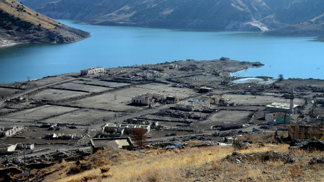 Baraj kapaklarının kısmen açılmasıyla su seviyesi düşünce köydeki evler, cami, kilise ve bazı tarihi binalar gün yüzüne çıktı.