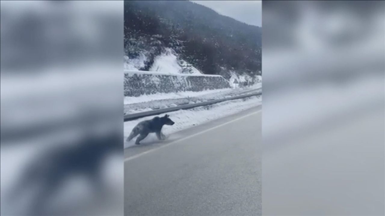 Devrekani-Kastamonu kara yolunun Oyrak Geçidi'nde 4 bozayı yola indi. Bir süre yolda koşturan ayılardan biri, ormanlık alana girerek gözden kayboldu.