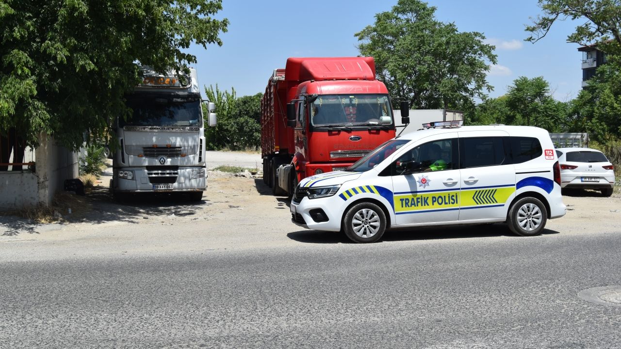 Denetimlerde tır parkı dışında park edilen 7 tır tespit edildi. Sürücülere, Karayolları Trafik Kanunu’na aykırı hareket ettikleri gerekçesiyle ceza kesildi.