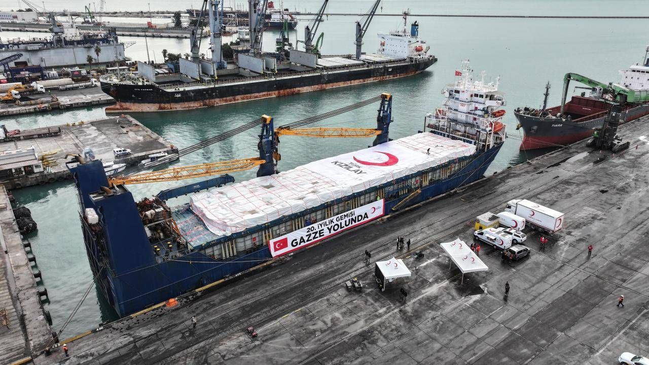 Bu kapsamda Türk Kızılay tarafından hazırlanan ve gıda, hijyen, giyim, battaniye, barınma ve bebek malzemeleri ağırlıklı yaklaşık 1400 ton temel insani yardım malzemesinin yer aldığı "İyilik Gemisi"nin uğurlanması için Mersin Uluslararası Limanı'nda tören düzenlendi.
