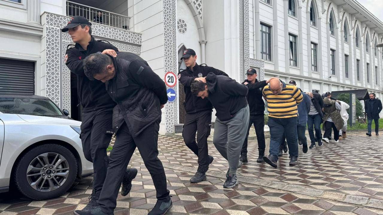 İş yeri sahibi K.O., oğlu İ.O., yeğeni A.A.O. ve zanlılar G.G., G.B., H.E., A.O.A., O.Y., Ö.A., G.D. ile A.O. güvenlik önlemleri altında İl Emniyet Müdürlüğünden çıkarıldı.
