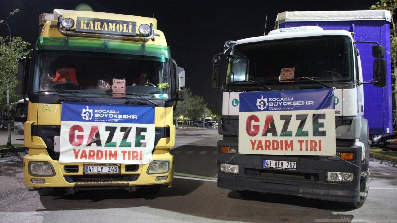 Hazırlanan 2 tır, duanın ardından sirenler eşliğinde Gazze'ye hareket etti.
