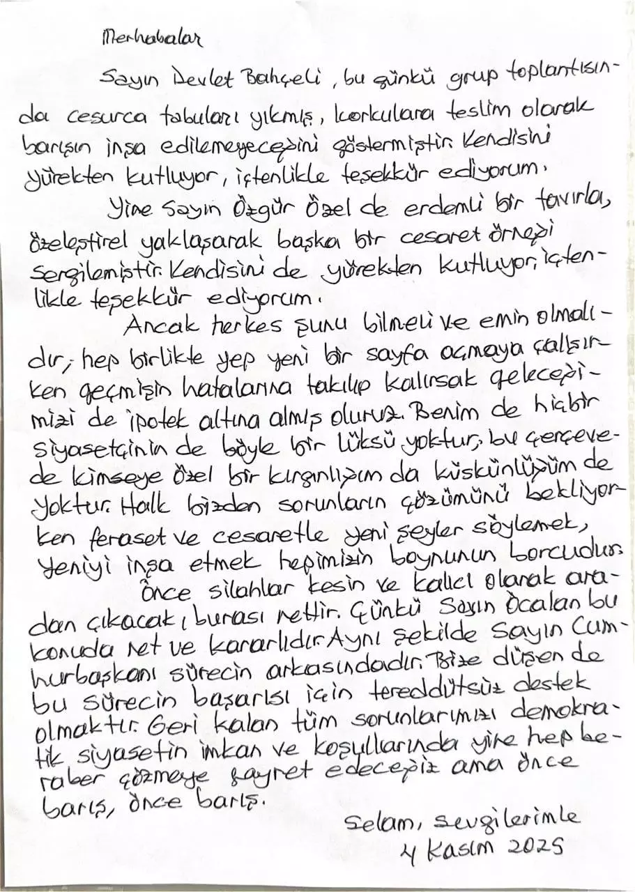 Edirne Cezaevi'nde tutuklu bulunan eski HDP Eş Genel Başkanı Selahattin Demirtaş, hakkındaki AİHM kararına ilişkin olarak "Tahliyesi, Türkiye için hayırlı olacaktır" diyen MHP lideri Devlet Bahçeli'ye teşekkür mesajı yayımladı.