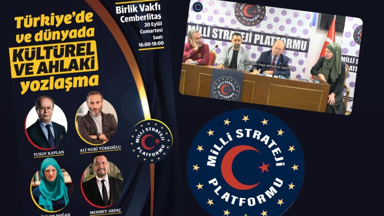 Milli Strateji Platformu, ‘Türkiye’de ve dünyada kültürel ve ahlaki yozlaşma’ konulu bir konferans düzenledi. Prof. Dr. Yusuf Kaplan, Oyuncu Ali Nuri Türkoğlu ve Gazeteci Mehmet Ardıç’ın konuşmacı olarak katıldığı programın açılış konuşmasını yapan Milli Strateji Platformu Başkanı Gazeteci Özlem Doğan, İsrail’in Gazze’de yaptığı soykırıma dikkat çekerek İslam ülkelerinde de Siyonist destekçisi küresel karanlık güçler tarafından gençlerin zihnine kansız soykırım yapıldığını söyledi. “Belki bugün başımıza bomba yağmıyor olabilir ama gençlerin beyinleri bombalanıyor, zihinleri ifsad ediliyor. Gazze’deki mazlumlar gibi açlıktan ölmüyoruz fakat yeni nesiller manevi yönden aç” ifadelerini kullandı.