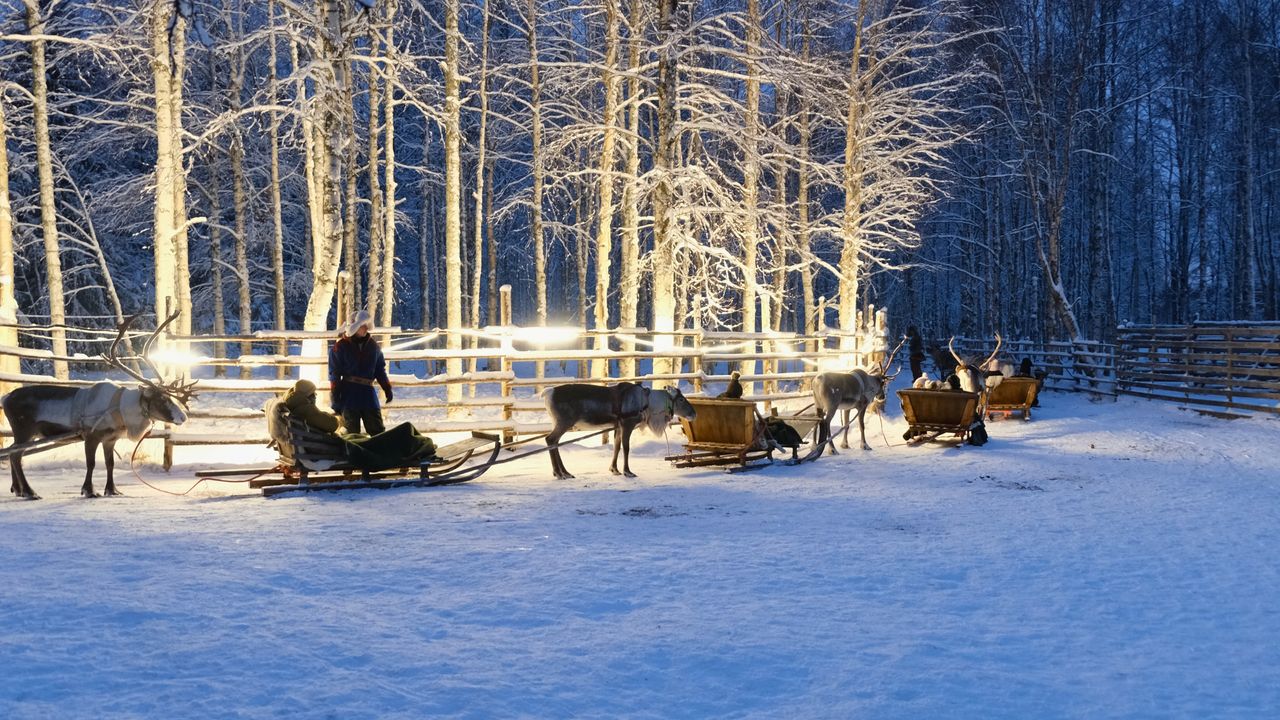 Geyiklerle ve köpeklerle vakit geçiren ziyaretçiler için ormanda oluşturulan belirli rotada bu hayvanların çektiği kızaklarla tur düzenleniyor.