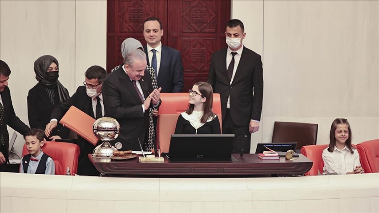 Özel oturumda Mamak Atlıoğlu Ortaokulu 6. Sınıf öğrencisi Havva Dilay Gülez, Şentop'tan başkanlık koltuğunu devraldı.
