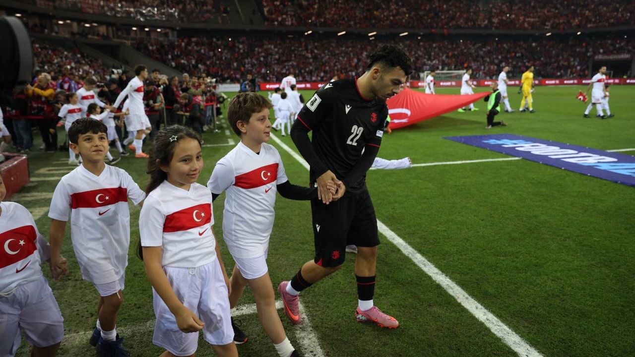 A Milli Futbol Takımı dünya kupası eleme grubunda Gürcistan ile oynadığı maçta stadyuma Gazzeli çocuklarla birlikte çıktı.