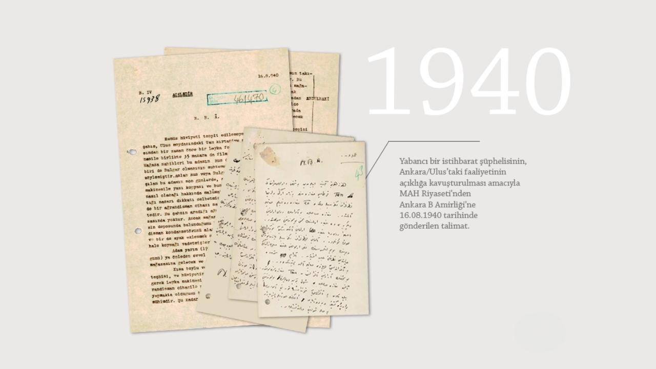 Bu belge, yabancı bir istihbarat şüphelisinin Ankara'nın Ulus semtindeki faaliyetinin açıklığa kavuşturulması amacıyla "aceledir" ibaresiyle gönderilen 16 Ağustos 1940 tarihli istihbarat raporu oldu.