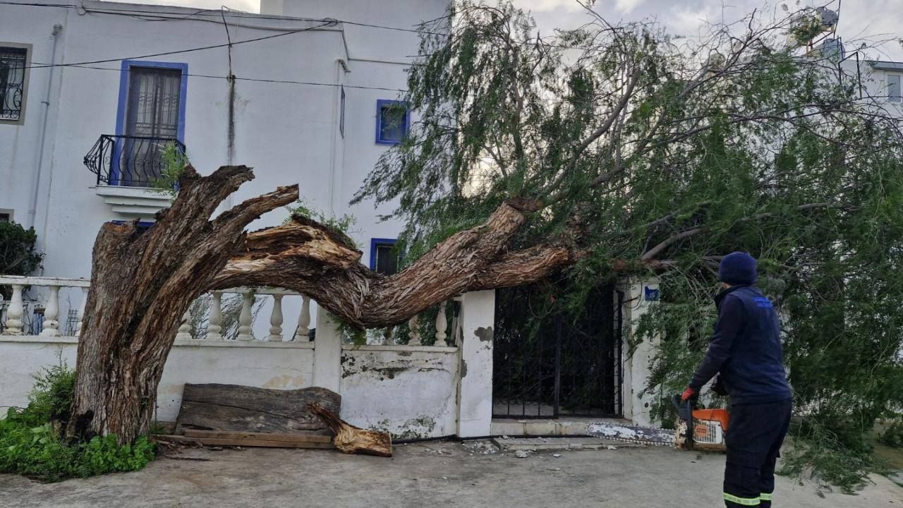 Marmaris'te etkili olan fırtına da birçok mahallede ağaçların devrilmesine, elektrik tellerinin kopmasına neden oldu. Devrilen ağaçlar nedeniyle bazı araçlar zarar gördü.