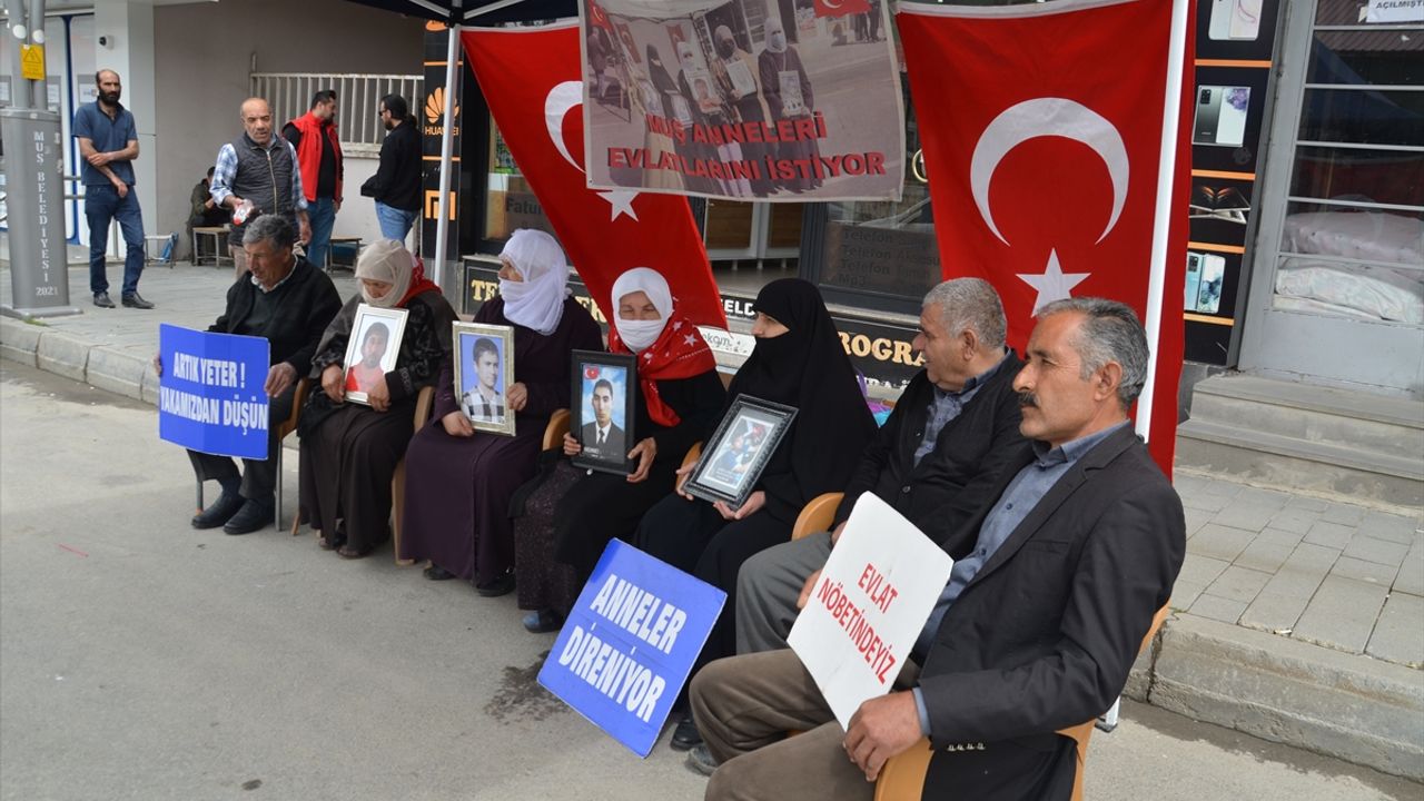 "Anneler direniyor", "Evlat nöbetindeyiz" ve "Artık yeter, yakamızdan düşün" yazılı pankartlar açan anne babalar, DEM Parti ve terör örgütü PKK'ya tepki gösterdi.