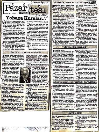 Daha altta ise, Çetin Emeç’in 5. sayfadaki yazısının başlığı: “Yobaza kurslar”…