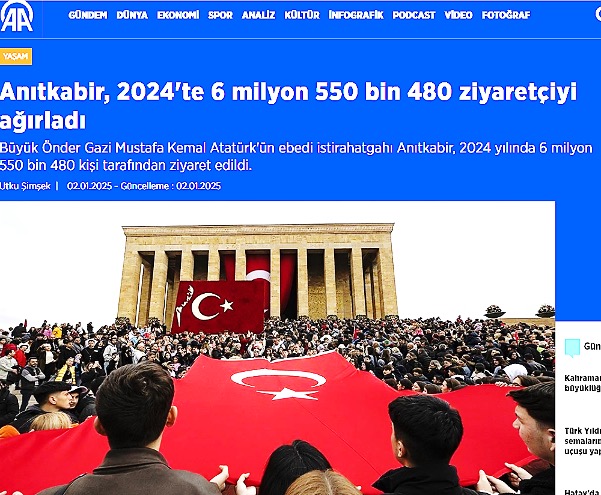 (Utku Şimşek, 2.1.2025; https://www.aa.com.tr/tr/yasam/anitkabir-2024te-6-milyon-550-bin-480-ziyaretciyi-agirladi/3440314#; 24.8.2025)