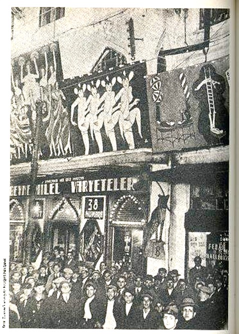 1930’lu senelerin “Kemalist Türkiye”sinden manzaralar… Frenk Medeniyetine tamâmen temessül edebilmek için sefâhat -bizzât nümûne olunarak ve buradaki misâlde olduğu gibi, sâir vâsıtalarla- teşvîk̆ ediliyor…