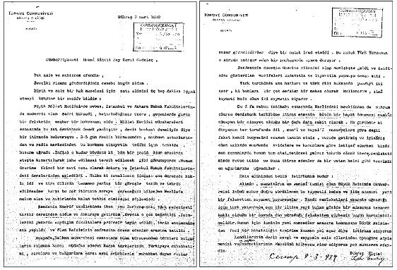 Bükreş Sefîri Hamdullah Suphi Tanrıöver’in Cumhûr Riyaseti Umûmî K̃âtibi Kemal Gedeleç’e gönderdiği ve Sadri Maksudi lehinde tavassutunu ricâ ettiği, bu meyânda, “Ebedî Şef” devrindeki –târihte belki emsâl̃i görülmemiş- dil mezâlimine de temâs ettiği 3 Mart 1939 târihli mektub (Cumhurbaşkanlığı Arşivi; Birinci 2017: 107)… L̃âkin kimi kime şik̃âyet ediyordu ki!