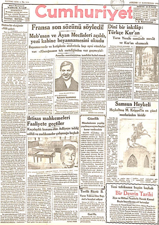(Cumhuriyet, 21.1.1932, s. 1)