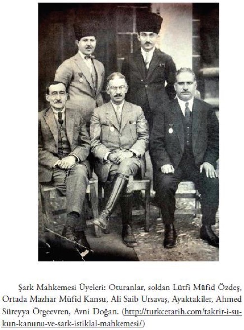 (Yurdal Demirel, “Şark İstiklâl Mahkemesinde Görülen Bir Dava: Gazeteciler Davası”; İstiklâl Mahkemeleri Sempozyumu: Bildiriler; 10-11 Aralık 2015 / Adıyaman, Yayına Haz.: Aynur Yavuz Akengin, Ankara: Atatürk Araştırma Merkezi Yl., 2016 içinde, s. 340)