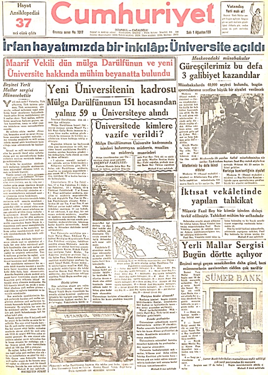 (Cumhuriyet, 1.8.1933, s. 1)