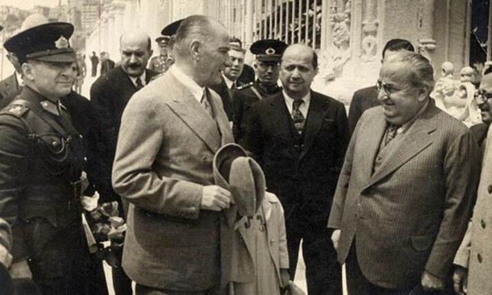 Resimde, “Büyük Şef”, Yunus Nadi ile samîmî bir sohbet esnâsında… “Büyük Şef”in en yakın gazeteci dostlarından ve matbûâttaki başlıca sözcülerinden biri, Yunus Nadi idi. Cumhuriyet’i de, Tan’ı da “Büyük Şef” têsîs ettirmiş ve kendilerine büyük imkânlar tahsîs etmişti. Her iki gazete ve husûsen Yunus Nadi ile Ahmet Emin Yalman arasında Ekim 1937’deki kıyasıya kalem münâkaşası dahi onun nazarları altında cereyân ediyordu. Nihâyet onun “emriyle” münâkaşa 27 Ekim 1937’de bir ânda kesildi ve bir daha da canlanmadı. Şu vazıyette, bu hâdisede bir “bit yeniği” aramak mâkûl olmaz mı?
