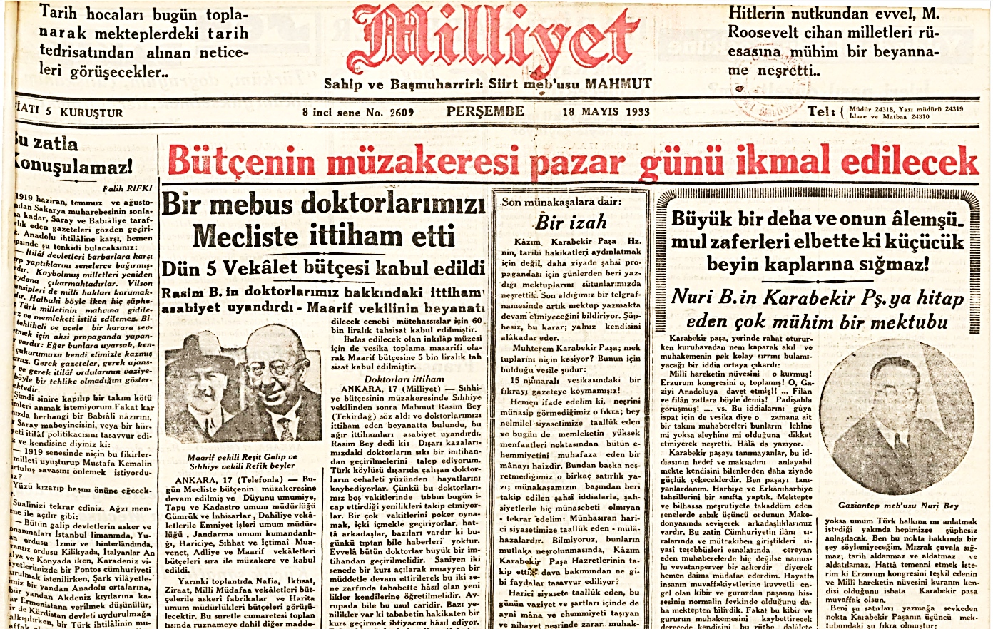 (Milliyet, 18.5.1933, s. 1)