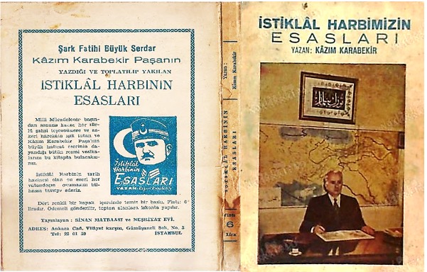 Rahmetli Kâzım Karabekir Paşa’nın -İstiklâl Harbi’ne dâir bâzı hakîkatleri ifşâ ettiği için “Mutlak Şef”in şimşeklerini üzerine çeken- kitabının 1951’deki ikinci baskısının ön ve arka kapakları… Bu ikinci baskı gibi 1933’teki yakılan ilk baskısı da Sinan Omur tarafından yapılmıştı…