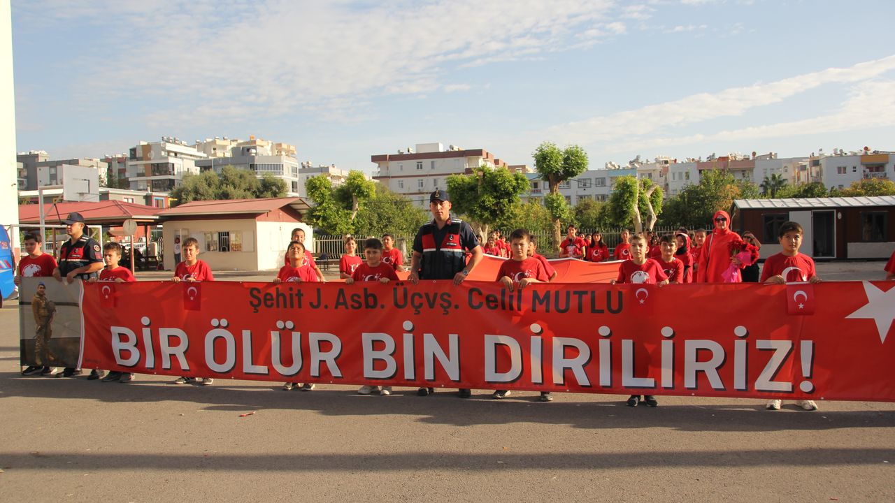 Şehidin eşi Melike Mutlu'nun da yer aldığı etkinlikte öğrenciler, şehidin kabrine çiçek bıraktı ve dua etti.