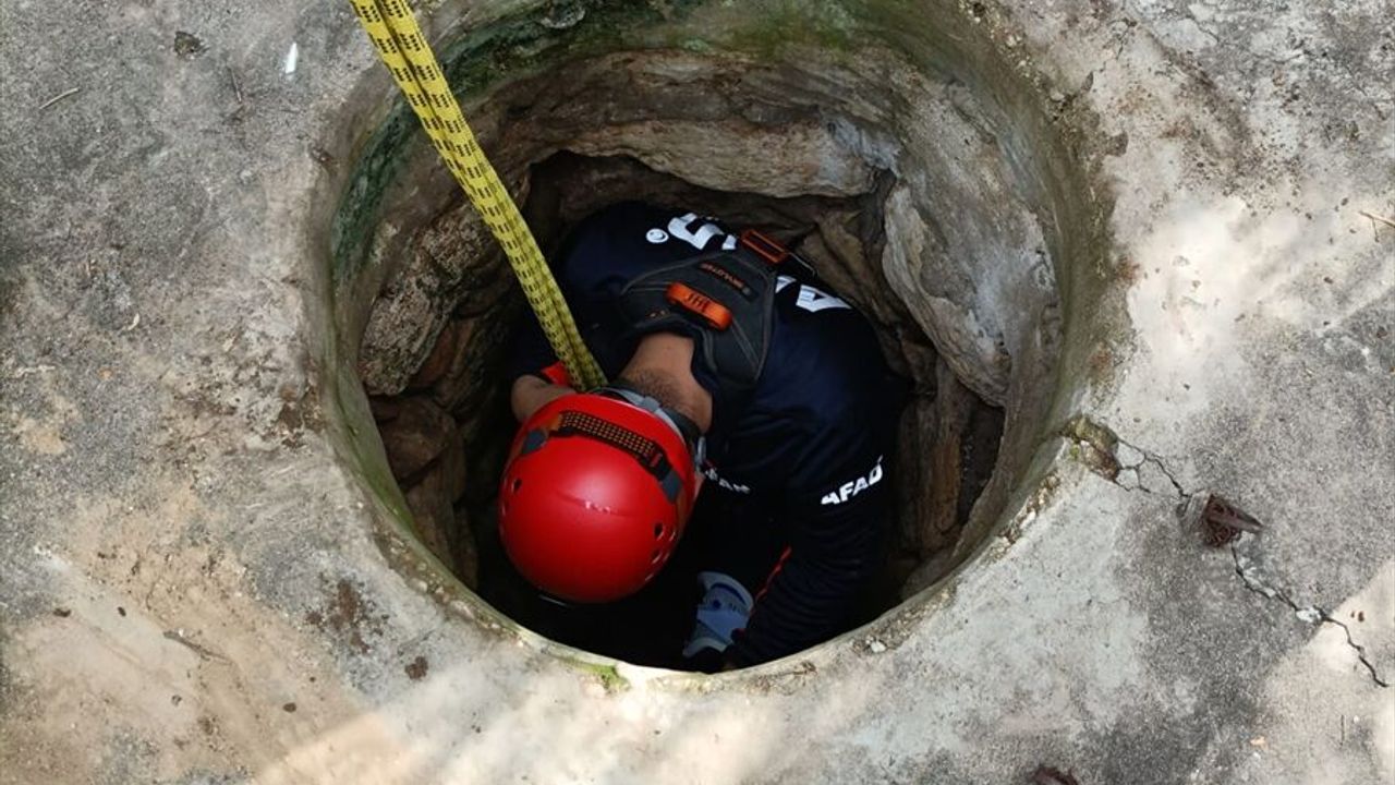 Bölgeye sevk edilen itfaiye ve AFAD ekipleri, halatla kuyuya inerek Örtlek'i bulunduğu yerden çıkardı.