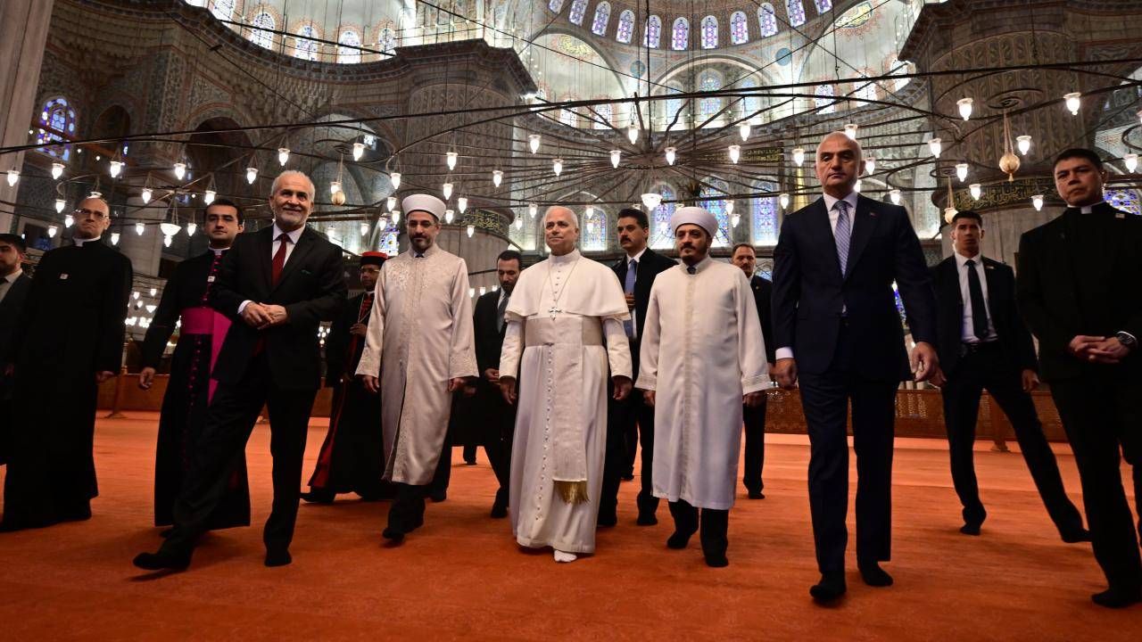 Türkiye ziyareti kapsamında İstanbul'da bulunan Papa 14. Leo ve beraberindeki heyet, Sultanahmet Camisi'ni gezdi.