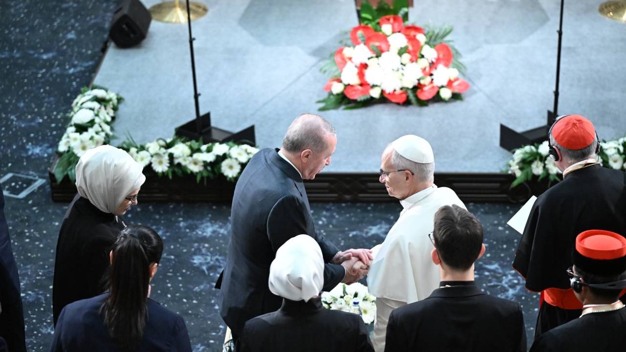 Papa 14. Leo, Türkiye ziyaretinde dünyanın 'küresel ölçekte artan bir çatışma düzeyine teslim olmaması gerektiği' uyarısında bulundu. Papa, 'İnsanlığın geleceği tehlikede' diyerek diyalog ve istikrarın teşvik edilmesi gerektiğine dikkat çekip Cumhurbaşkanı Recep Tayyip Erdoğan'ın 'istikrar kaynağı' olarak rol üstlenmesi çağrısında bulundu.