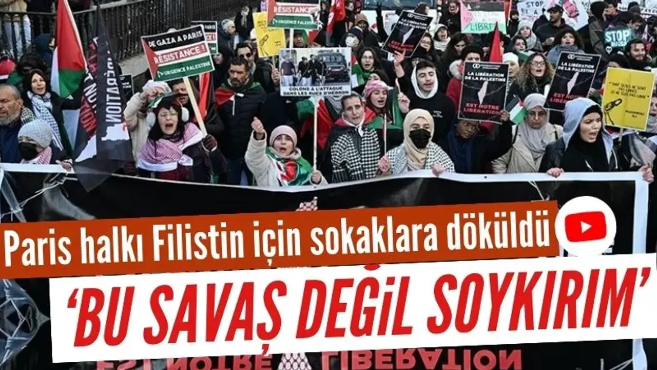 Paris'te Cumhuriyet Meydanı'nda "Bu bir soykırım, savaş değil", "Gazze'nin çocukları Filistin'in çocukları, insanlık öldürülüyor" ve "Yaşasın Filistin" sloganları eşliğinde başlayan gösteri, Bastille Meydanı'nda son buldu.