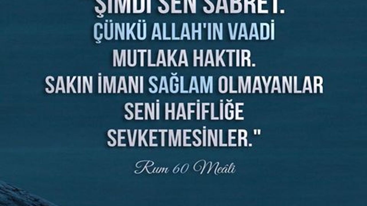 60. (Resûlüm!) Sen şimdi sabret. Bil ki Allah'ın vadi gerçektir. (Buna) iyice inanmamış olanlar, sakın seni gevşekliğe sevketmesin!