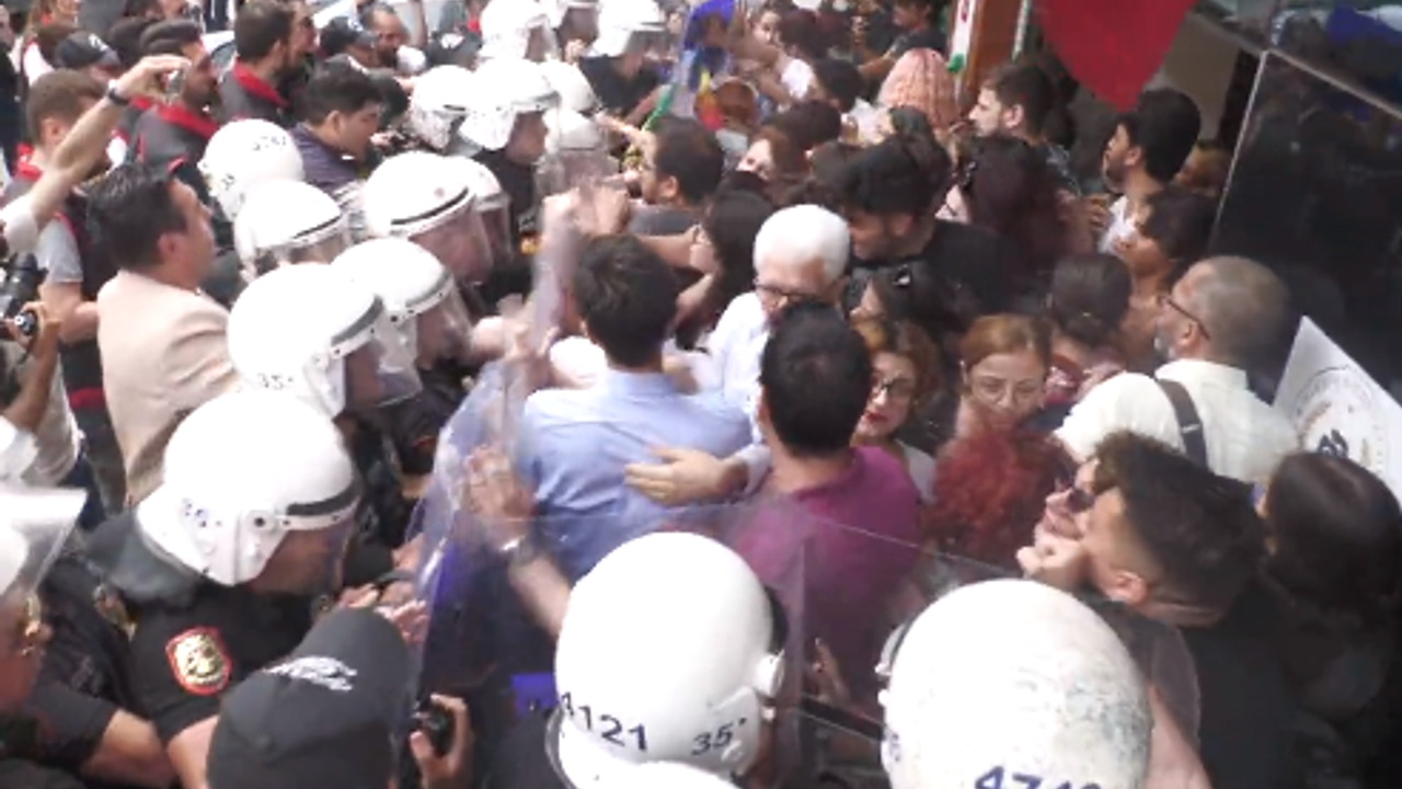 Bozguna uğrayan ve propaganda yapamayan sapkın örgütün destekçileri, izinsiz toplanıp basın açıklaması yapmak istedi. Taşkınlık çıkaran örgüt destekçilerine polis müdahalede bulundu.