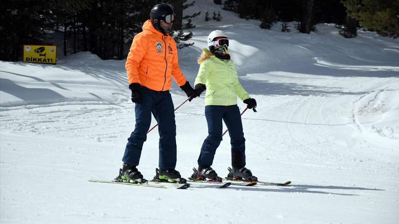 Bayram tatili için bölgeye gelen kayak tutkunları, uzun pistlerde kayak, snowboard ve kızak yaparak karın keyfini yaşıyor.