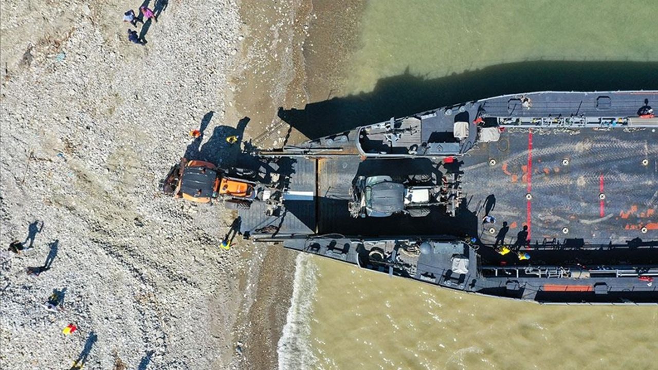 TCGÇ-144 ve TCGÇ-152 isimli çıkarma gemilerine Kastamonu'nun Abana sahilinden yüklenen 6 adet iş makinesi ve 10 adet arazi aracı, 2 saatlik yolculuğun ardından Türkeli'de karaya çıktı.