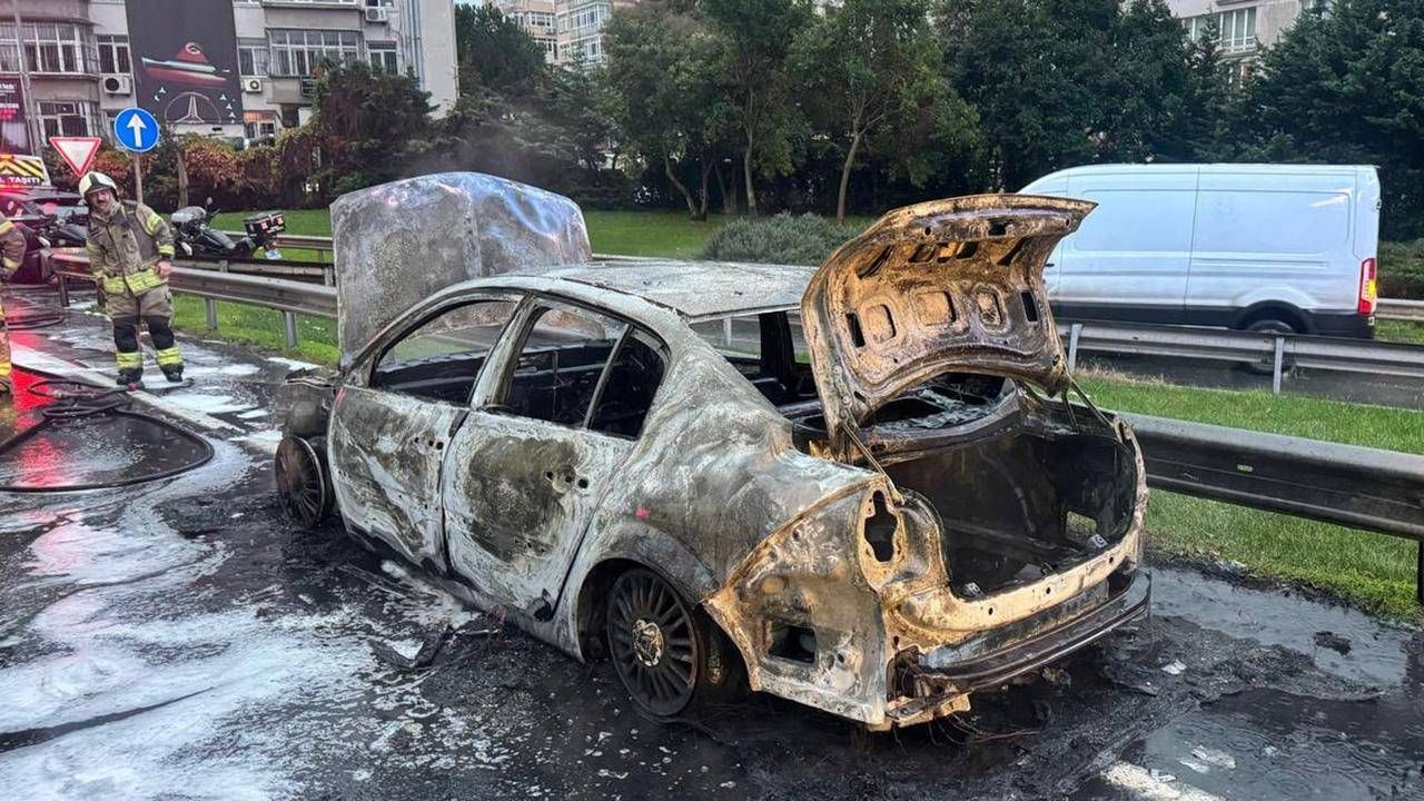 İtfaiye ekiplerinin müdahalesiyle araçtaki yangın söndürüldü.