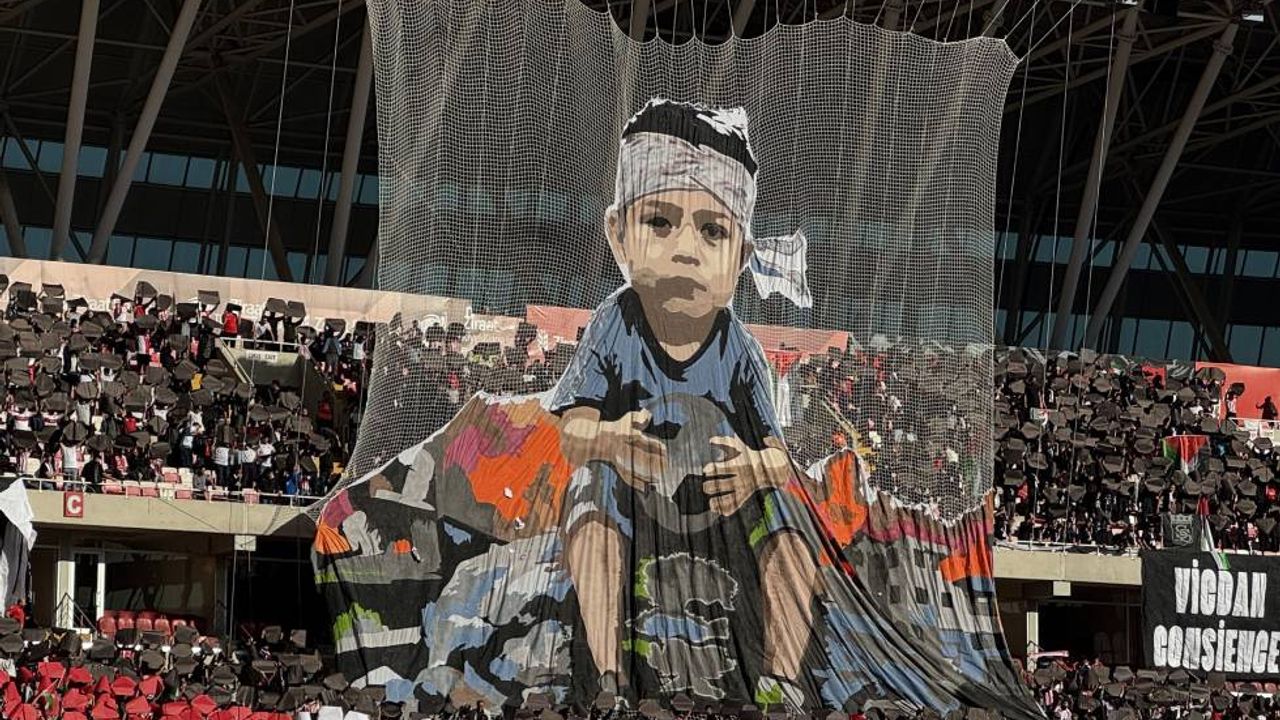 Sivasspor taraftarı, maç öncesi Filistin için özel bir koreografi hazırladı. Taraftarın koreografisi sosyal medyada kısa sürede büyük ilgi gördü.