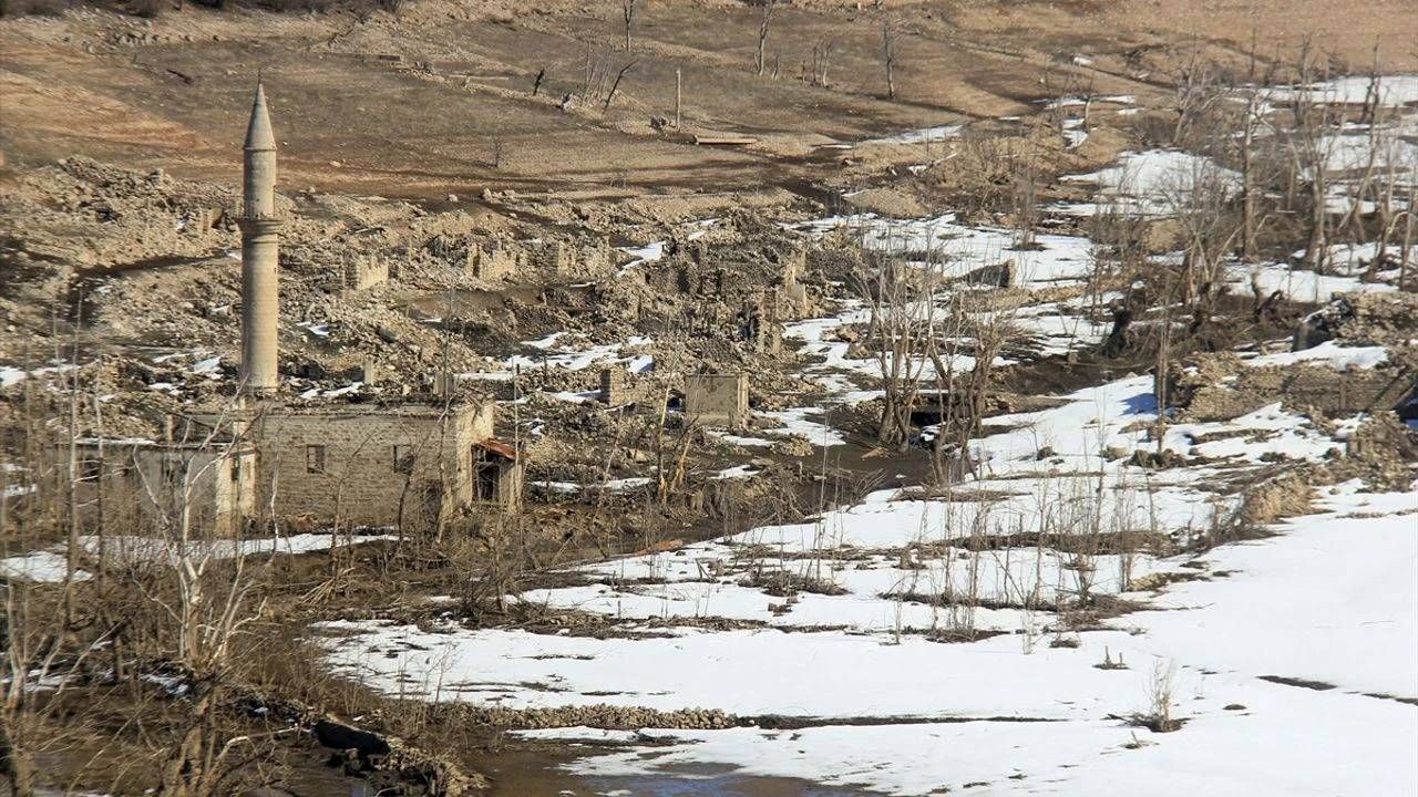 Tamamen ortaya çıkan köy ve cami gezilebilir hale geldi. Caminin minaresinde güvercinlerin yuva yapması da dikkati çekti.