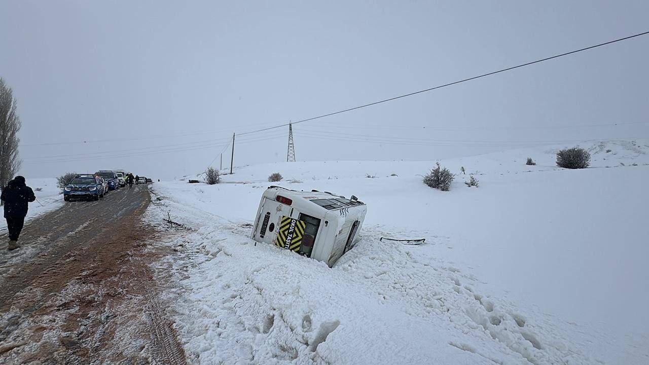 Kazada, ilk belirlemelere göre sürücü ile araçtaki 9 öğrenci yaralandı.
