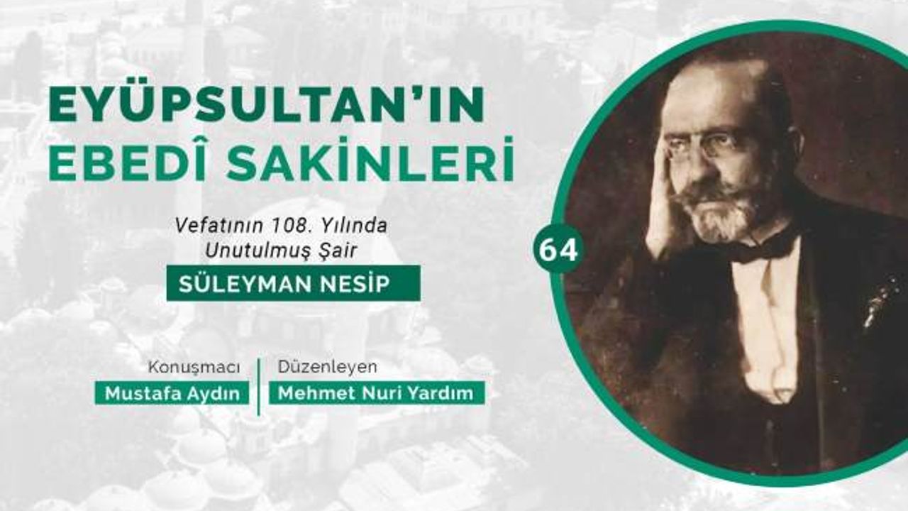 Yeni Dünya Vakfı’nda düzenlenen “Eyüpsultan’ın Ebedî Sakinleri” toplantıları aralıksız devam ediyor. Toplantıların 64’ncüsünde Türk edebiyatında Servet-i Fünun devrinin önemli şair ve yazarı Süleyman Nesip anılacak. Süleyman Nesip’i edebiyatçı yazar Mustafa Aydın anlatacak. Mustafa Aydın, edebiyatçımızın hayatını, sanatını, şiirlerini ve mizacını dile getirecek. Anma programı, Yeni Dünya Vakfı Genel Merkezi’nde yarın (7 Eylül 2025 Pazar günü) saat 16.00’da başlayacak. Programda Süleyman Nesip’in şiirlerinden örnekler sunulacak.