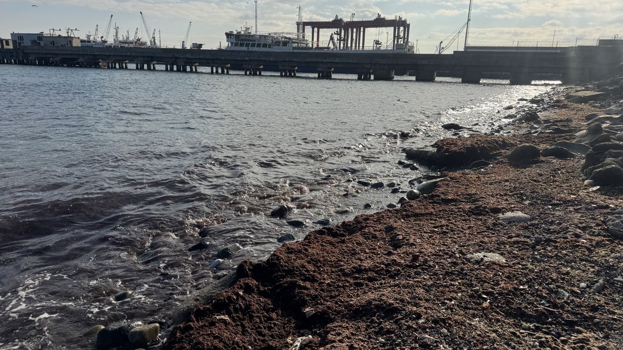 Sahildeki bazı alanlarda kırmızı yosun birikti.