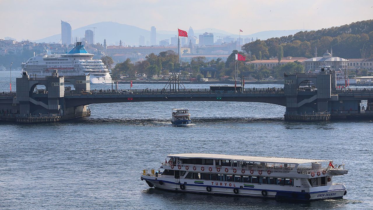 Dün sabah saatlerinde Boğaz'dan Haliç'e ilerleyen tur teknesi, Galata Köprüsü altından geçerken tentesi köprüye katıldı. Teknenin parçaları denize düşerken, tekne seyrine devam etti. Olay yerindeki vatandaşlar köprünün sallandığını söyledi.