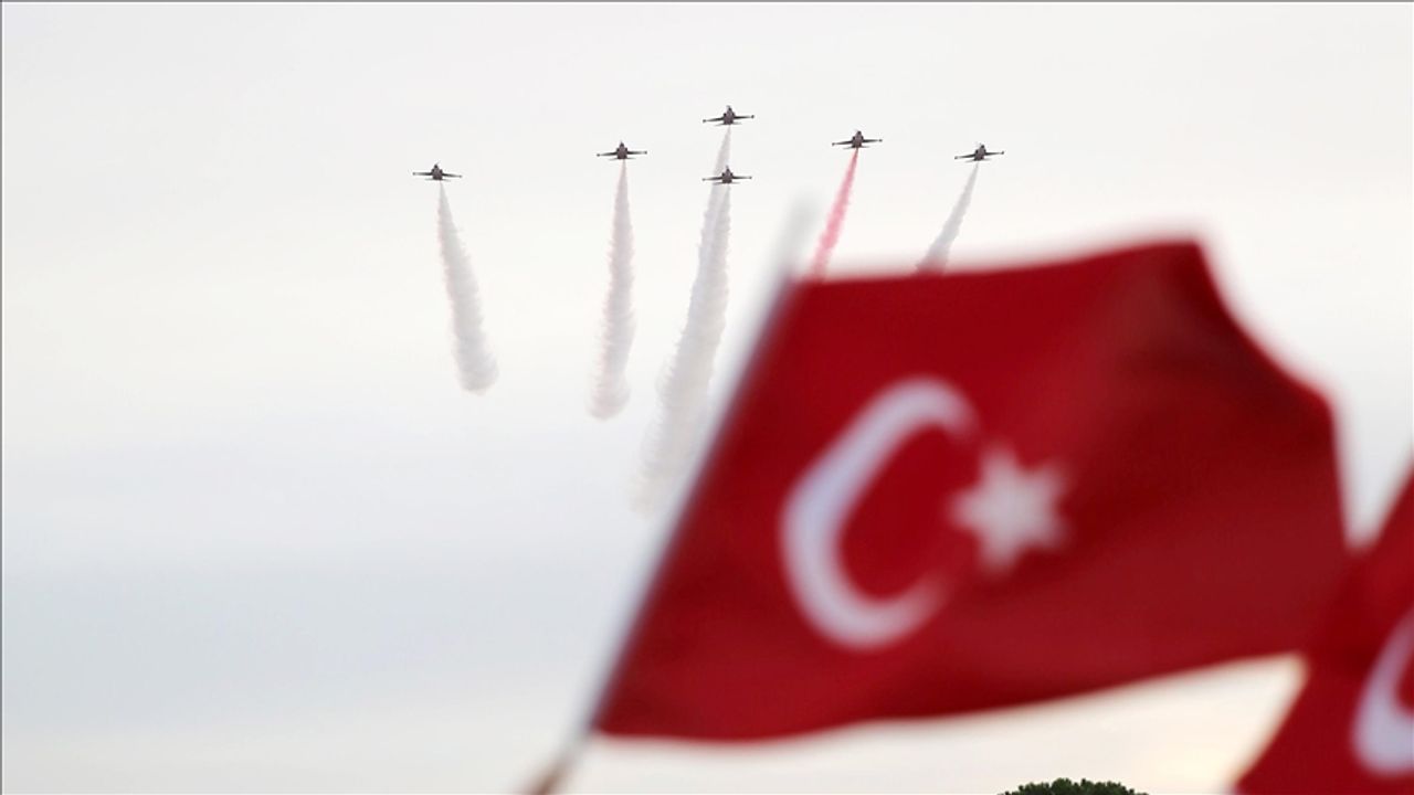 Türk Yıldızları'nın, Cumhuriyet'in 100. yıl dönümüne ithafen gökyüzüne "100" sayısını çizerek başladığı gösterisi, yaklaşık yarım saat sürdü.