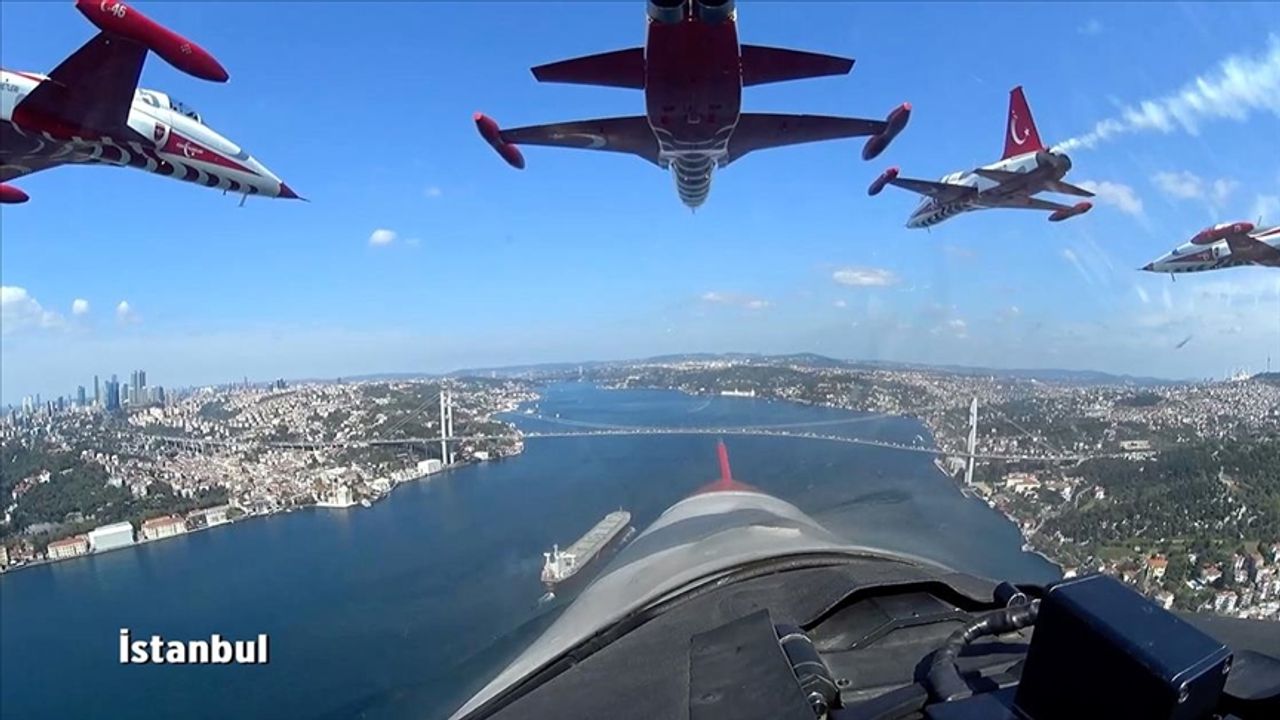 Yurt içindeki etkinliklerde 42 ilin tarihi ve önemli mekanlarını havadan görüntüleyen ay yıldızlı ekibin kokpitten kaydettiği görüntüler, gösterileri gibi izleyenlerin beğenisini kazanıyor.