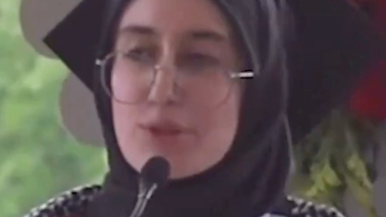 Ankara Üniversitesi Hukuk Fakültesi birincisi Kübra Aksoy, mezuniyet konuşmasını İsrail'in katlettiği Filistinli çocuklara ithaf etti.