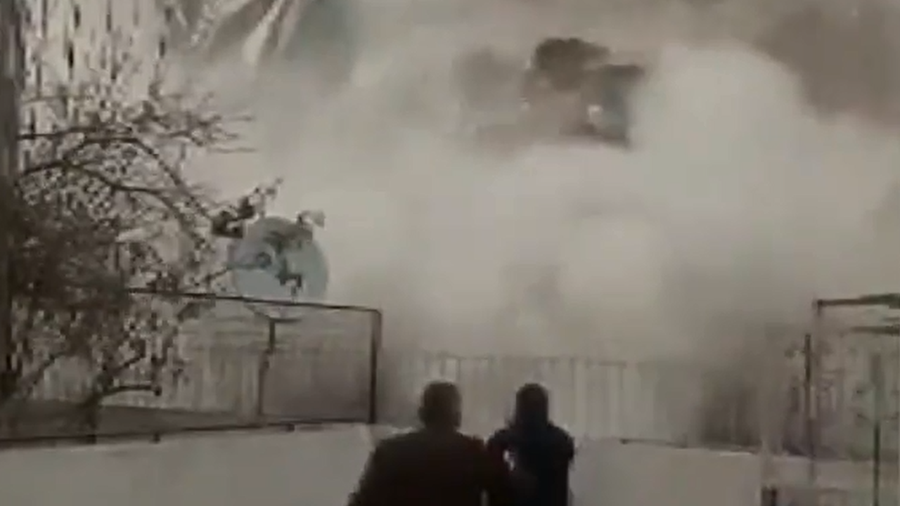 Malatya'da depremde ağır hasar gören bina kontrollü yıkılırken aniden çöktü. Binanın yakınında bulunan genç kız ise telefonuyla görüntü almaya devam etti. Durumu fark eden baba kızına sert tepki gösterdi.