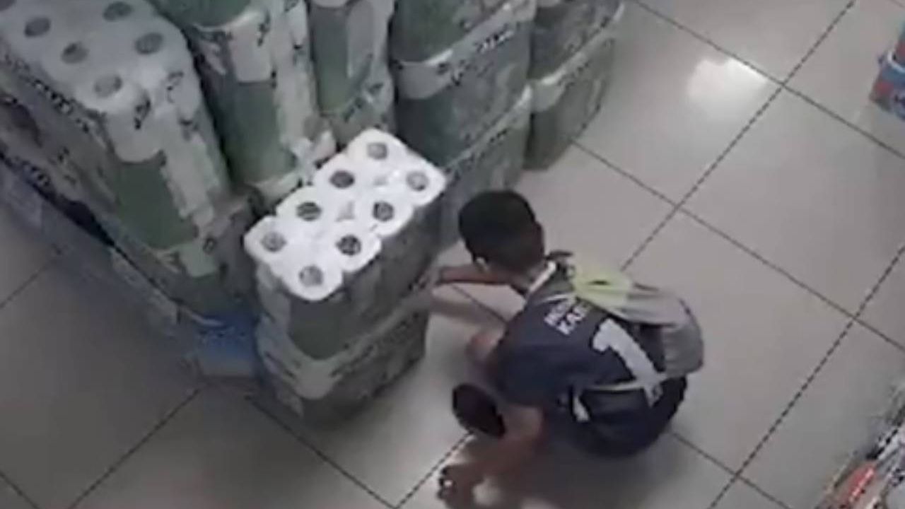 Markete giren çocuk, peçeteleri böyle tutuşturdu