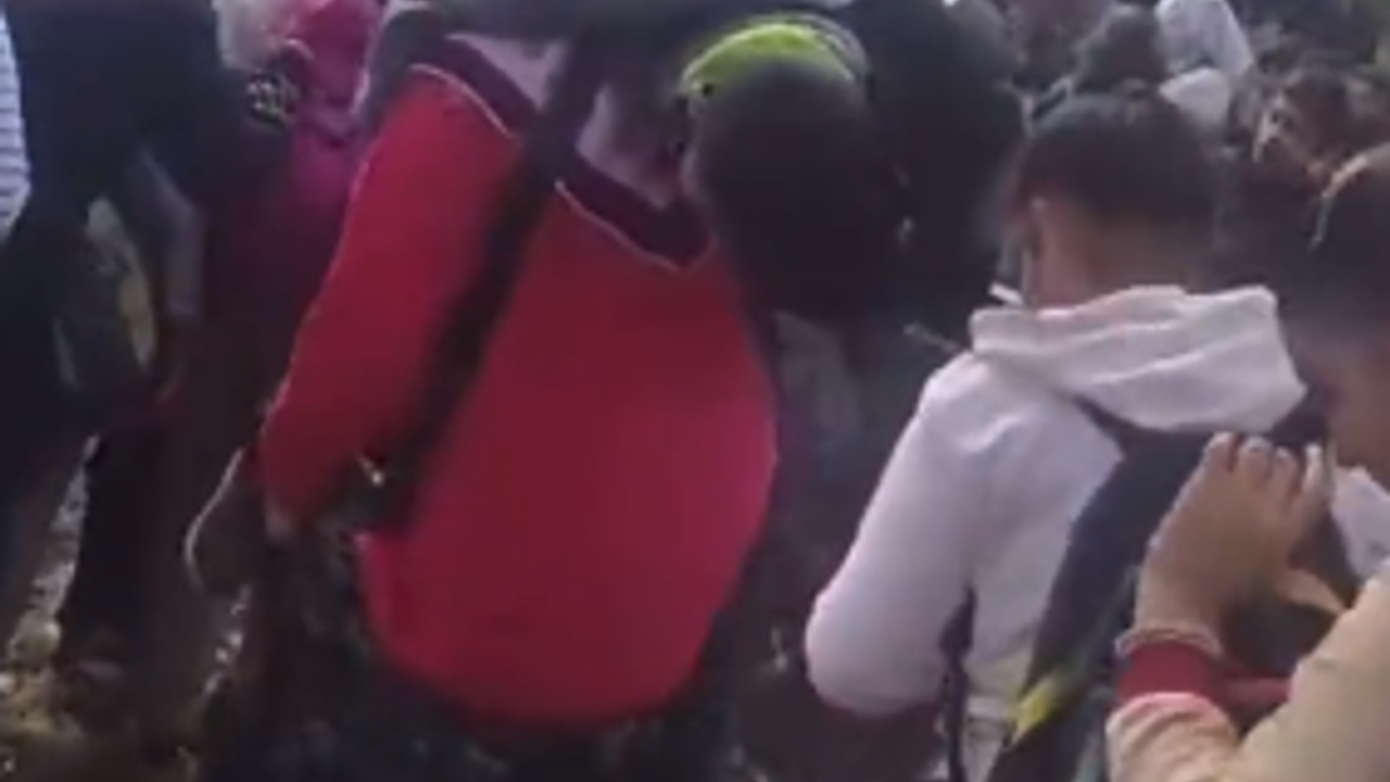 Videoda, öğrencilerin ve velilerin okul yolunda yağmur nedeniyle çamura dönen yolda yürümekte zorluk çektiği görüldü.