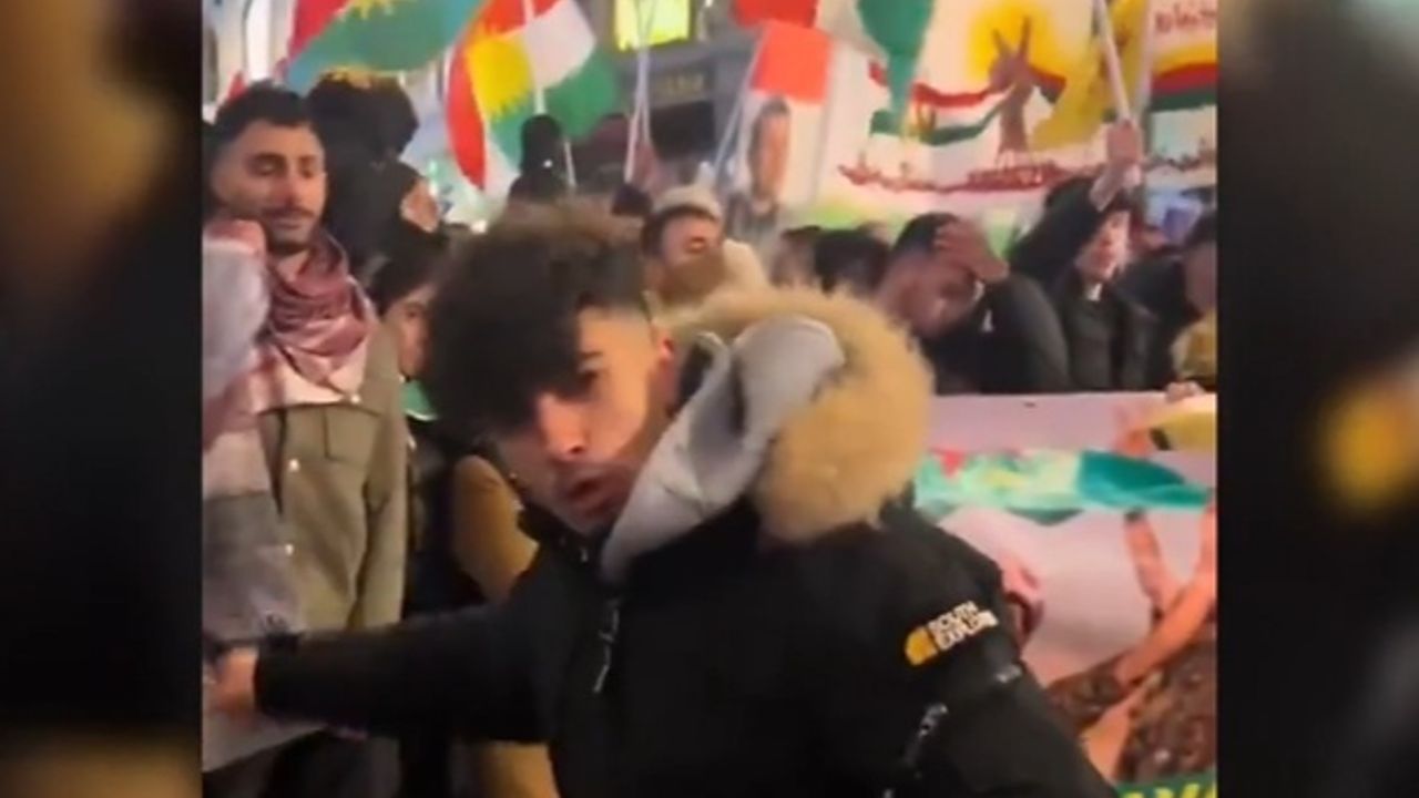 SDG/PKK’ya destek amacıyla düzenlenen protestoda konuşan kişi 'Mazlum Abdi’den başka ilah yoktur' ifadelerini kullandı.