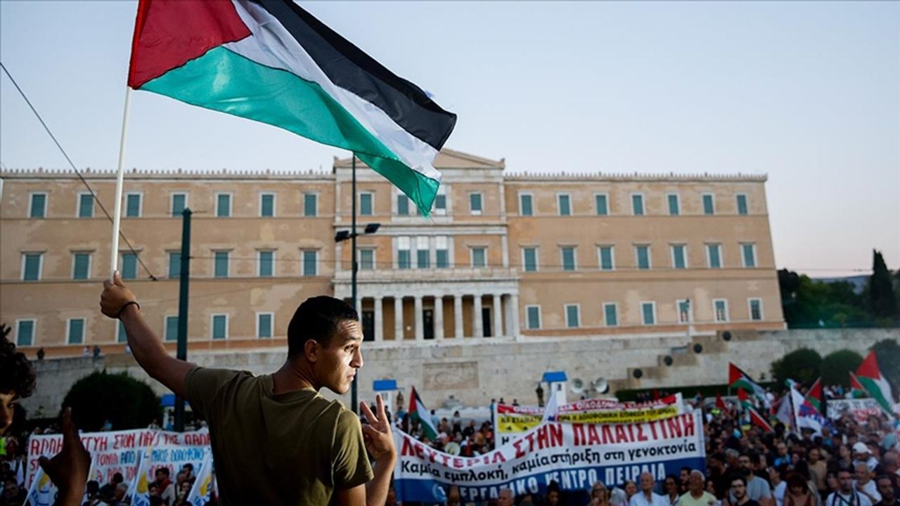 PAME'nin çağrısıyla Filistin'e destek vermek üzere bugün Yunanistan'da, başta Atina ve Selanik olmak üzere 40'ın üzerinde kentte eylem düzenlendi.