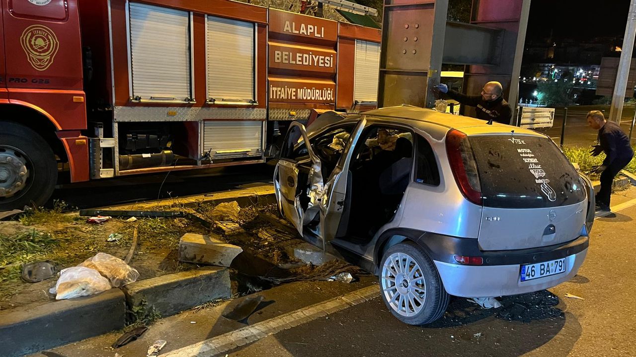 Karadeniz Ereğli istikametinden Alaplı'ya giden E.K.G. (21) idaresindeki 46 BA 791 plakalı otomobil, sürücünün direksiyon hakimiyetini kaybetmesi sonucu üst geçidin direğine çarptı.